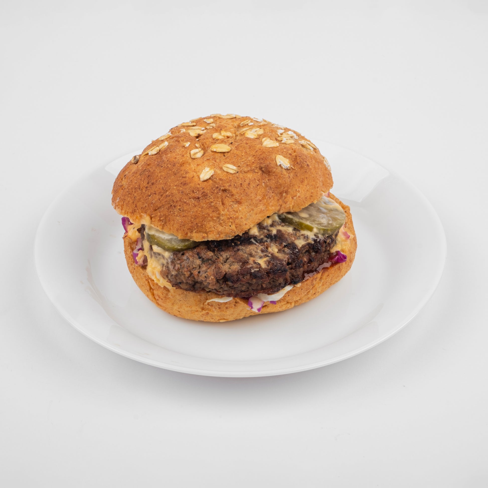 A wholesome beef burger sandwich designed to keep you full and energized.